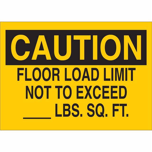 This is manufactured by Brady Corporation. The manufacturer part number is 25751. Label with a size of 10.00" l x 7.00" w (254.0mm x 177.8mm). The product is rohs3 compliant. It is assigned with possible HTSUS value of 3926.90.9985. It is shipped in bulk. It has a classic black legend, yellow background colour. The product brady®, is a highly preferred choice for users. The product is made from highly stable and reliable polyester. In addition, it is reach unaffected. Its typical moisture sensitivity level is not applicable. A bespoke label is a caution. floor load limit not to exceed. lbs. sq. ft. label. The product is suitable for use with caution. It has a long 4 weeks standard lead time. The product is designated with the ear99 code number