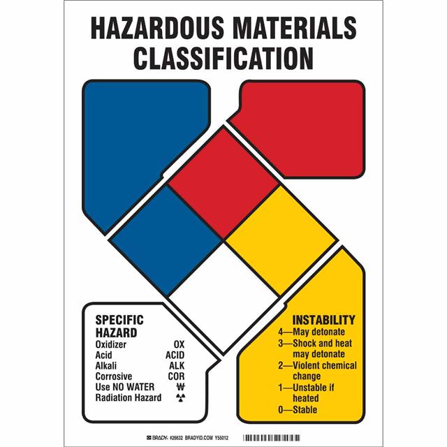 This is manufactured by Brady Corporation. The manufacturer part number is 26632. Label with a size of 14.00" l x 10.00" w (355.6mm x 254.0mm). The product is not applicable. It is assigned with possible HTSUS value of 3926.90.9985. It is shipped in bulk. It has a classic black, blue, red and yellow legend, white background colour. The product brady®, is a highly preferred choice for users. The product is made from highly stable and reliable polyester. In addition, it is reach unaffected. Its typical moisture sensitivity level is not applicable. A bespoke label is a hazardous materials classification specific hazard instability label. The product is suitable for use with warning. It has a long 4 weeks standard lead time. The product is designated with the ear99 code number