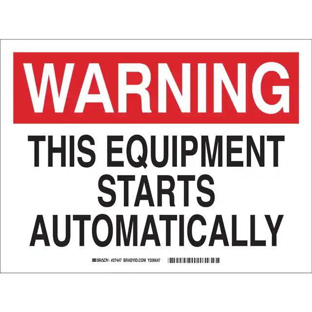 This is manufactured by Brady Corporation. The manufacturer part number is 27448. Label with a size of 12.00" l x 9.00" w (304.8mm x 228.6mm). The product is not applicable. It is assigned with possible HTSUS value of 3926.90.9985. It is shipped in bulk. It has a classic black and red legend, white background colour. The product brady®, is a highly preferred choice for users. The product is made from highly stable and reliable polyester. In addition, it is reach unaffected. Its typical moisture sensitivity level is not applicable. A bespoke label is a warning. this equipment starts automatically label. The product is suitable for use with warning. It has a long 4 weeks standard lead time. The product is designated with the ear99 code number