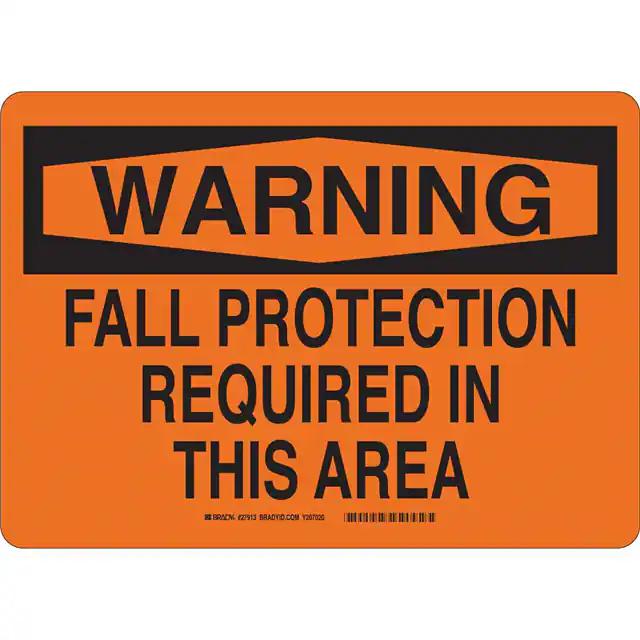 This is manufactured by Brady Corporation. The manufacturer part number is 27913. Label with a size of 14.00" l x 10.00" w (355.6mm x 254.0mm). It is assigned with possible HTSUS value of 3926.90.9985. It is shipped in bulk. It has a classic black legend, orange background colour. The product brady®, is a highly preferred choice for users. The product is made from highly stable and reliable polyethylene. In addition, it is reach unaffected. Its typical moisture sensitivity level is not applicable. A bespoke label is a warning. fall protection required in this area label. The product is suitable for use with warning. It has a long 4 weeks standard lead time. The product is designated with the ear99 code number