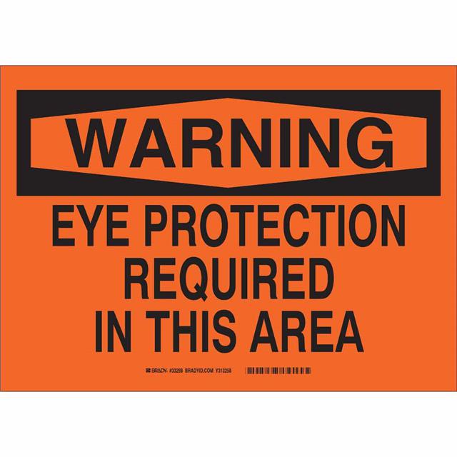 This is manufactured by Brady Corporation. The manufacturer part number is 33341. Label with a size of 14.00" l x 10.00" w (355.6mm x 254.0mm). The product is rohs3 compliant. It is assigned with possible HTSUS value of 3926.90.9985. It is shipped in bulk. It has a classic black legend, orange background colour. The product brady®, is a highly preferred choice for users. The product is made from highly stable and reliable polyethylene. In addition, it is reach unaffected. Its typical moisture sensitivity level is not applicable. A bespoke label is a warning. eye protection required in this area label. The product is suitable for use with warning. It has a long 4 weeks standard lead time. The product is designated with the ear99 code number