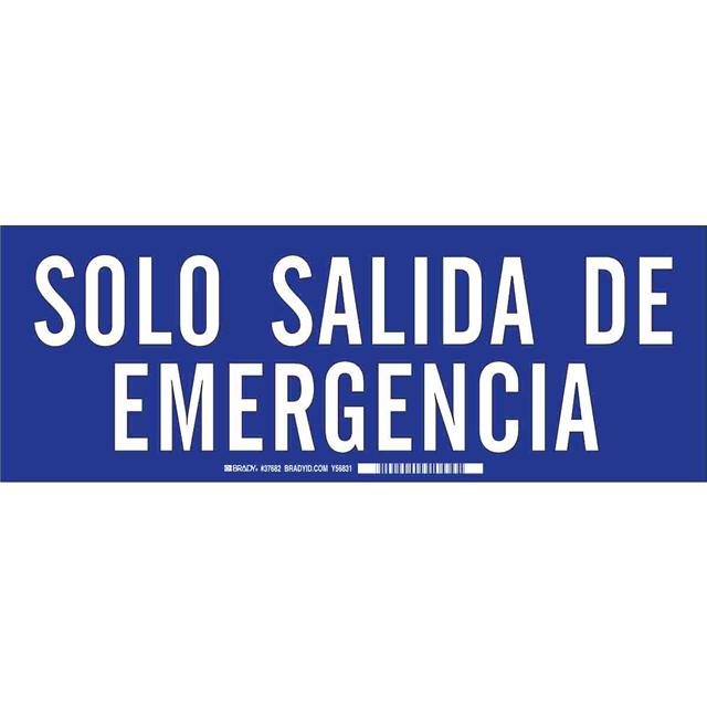 This is manufactured by Brady Corporation. The manufacturer part number is 37682. Label with a size of 14.00" l x 10.00" w (355.6mm x 254.0mm). The product is rohs3 compliant. It is assigned with possible HTSUS value of 3926.90.9985. It is shipped in bulk. It has a classic white legend, blue background colour. The product brady®, is a highly preferred choice for users. The product is made from highly stable and reliable polyester. In addition, it is reach unaffected. Its typical moisture sensitivity level is not applicable. A bespoke label is a solo salida de emergencia label. The product is suitable for use with notice. It has a long 4 weeks standard lead time. The product is designated with the ear99 code number