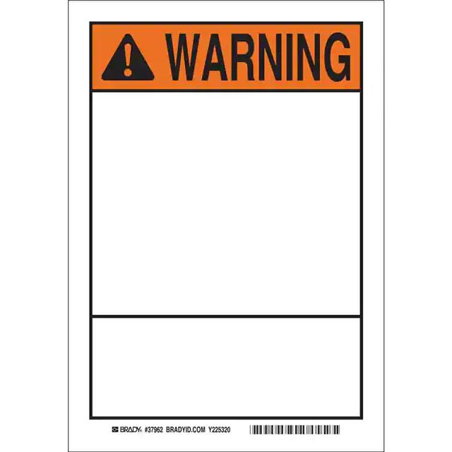 This is manufactured by Brady Corporation. The manufacturer part number is 37962. Label with a size of 10.00" l x 7.00" w (254.0mm x 177.8mm). The product is rohs3 compliant. It is assigned with possible HTSUS value of 8310.00.0000. It is shipped in bulk. It has a classic black and orange legend, white background colour. The product brady®, is a highly preferred choice for users. The product is made from highly stable and reliable aluminum. In addition, it is reach unaffected. Its typical moisture sensitivity level is not applicable. A bespoke label is a warning label. The product is suitable for use with warning. It has a long 4 weeks standard lead time. The product is designated with the ear99 code number