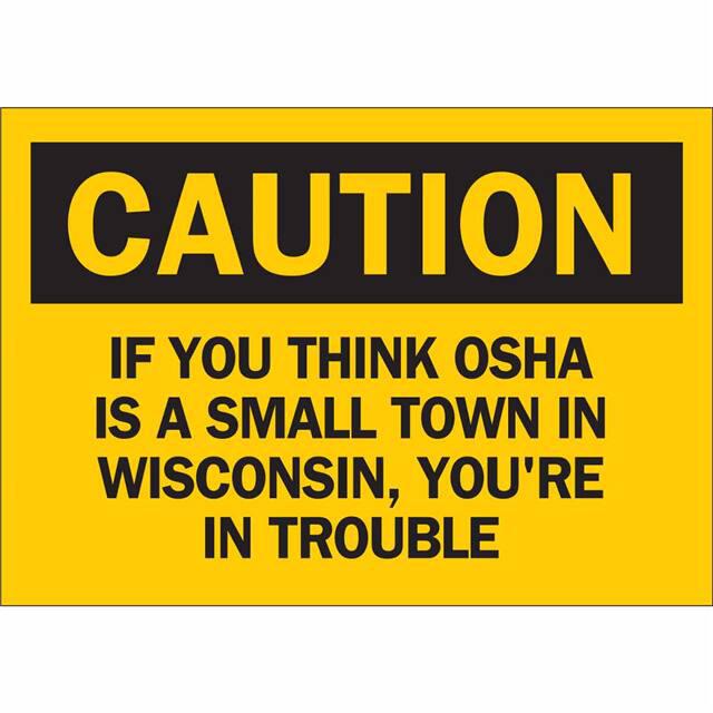 This is manufactured by Brady Corporation. The manufacturer part number is 38040. Label with a size of 10.00" l x 7.00" w (254.0mm x 177.8mm). The product is rohs3 compliant. It is assigned with possible HTSUS value of 3926.90.9985. It is shipped in bulk. It has a classic black legend, yellow background colour. The product brady®, is a highly preferred choice for users. The product is made from highly stable and reliable polyester. In addition, it is reach unaffected. Its typical moisture sensitivity level is not applicable. A bespoke label is a caution. if you think osha is a small town in wisconsin, you're in trouble label. The product is suitable for use with caution. It has a long 4 weeks standard lead time. The product is designated with the ear99 code number