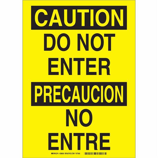 This is manufactured by Brady Corporation. The manufacturer part number is 38600. Label with a size of 14.00" l x 10.00" w (355.6mm x 254.0mm). The product is rohs3 compliant. It is assigned with possible HTSUS value of 3926.90.9985. It is shipped in bulk. It has a classic black legend, yellow background colour. The product brady®, is a highly preferred choice for users. The product is made from highly stable and reliable polyester. In addition, it is reach unaffected. Its typical moisture sensitivity level is not applicable. A bespoke label is a caution/precaucion. do not enter/ no entre label. The product is suitable for use with caution. It has a long 4 weeks standard lead time. The product is designated with the ear99 code number