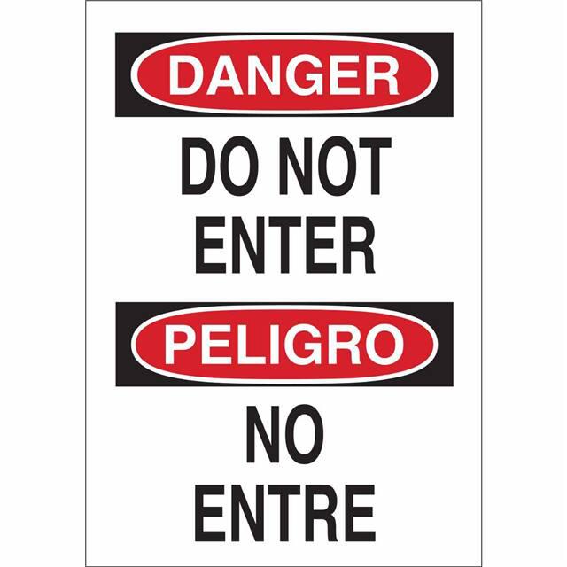 This is manufactured by Brady Corporation. The manufacturer part number is 38603. Label with a size of 14.00" l x 10.00" w (355.6mm x 254.0mm). The product is rohs3 compliant. It is assigned with possible HTSUS value of 3926.90.9985. It is shipped in bulk. It has a classic black and red legend, white background colour. The product brady®, is a highly preferred choice for users. The product is made from highly stable and reliable polyester. In addition, it is reach unaffected. Its typical moisture sensitivity level is not applicable. A bespoke label is a danger/peligro. do not enter/no entre label. The product is suitable for use with danger. It has a long 4 weeks standard lead time. The product is designated with the ear99 code number