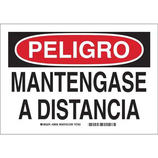 This is manufactured by Brady Corporation. The manufacturer part number is 38658. Label with a size of 14.00" l x 10.00" w (355.6mm x 254.0mm). The product is rohs3 compliant. It is assigned with possible HTSUS value of 3926.90.9985. It is shipped in bulk. It has a classic black and red legend, white background colour. The product brady®, is a highly preferred choice for users. The product is made from highly stable and reliable polyester. In addition, it is reach unaffected. Its typical moisture sensitivity level is not applicable. A bespoke label is a peligro. mantengase a distancia label. The product is suitable for use with danger. It has a long 4 weeks standard lead time. The product is designated with the ear99 code number