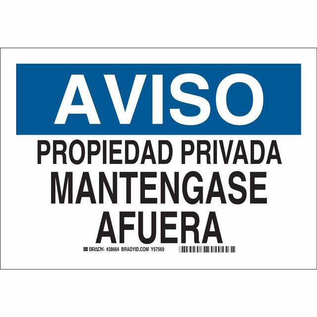 This is manufactured by Brady Corporation. The manufacturer part number is 38664. Label with a size of 14.00" l x 10.00" w (355.6mm x 254.0mm). The product is rohs3 compliant. It is assigned with possible HTSUS value of 3926.90.9985. It is shipped in bulk. It has a classic black and blue legend, white background colour. The product brady®, is a highly preferred choice for users. The product is made from highly stable and reliable polyester. In addition, it is reach unaffected. Its typical moisture sensitivity level is not applicable. A bespoke label is a aviso. propiedad privada mantengase afuera label. The product is suitable for use with notice. It has a long 4 weeks standard lead time. The product is designated with the ear99 code number