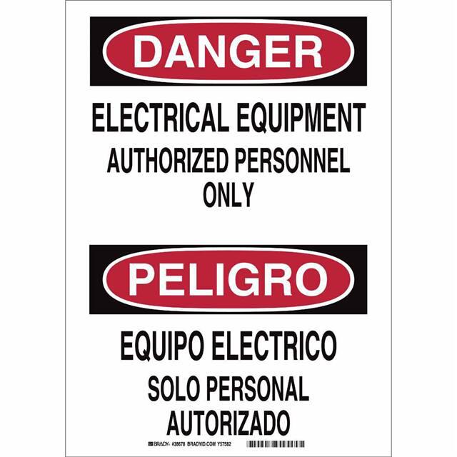 This is manufactured by Brady Corporation. The manufacturer part number is 38678. Label with a size of 14.00" l x 10.00" w (355.6mm x 254.0mm). The product is rohs3 compliant. It is assigned with possible HTSUS value of 3926.90.9985. It is shipped in bulk. It has a classic black and red legend, white background colour. The product brady®, is a highly preferred choice for users. The product is made from highly stable and reliable polyester. In addition, it is reach unaffected. Its typical moisture sensitivity level is not applicable. A bespoke label is a danger. elec equip auth pe label. The product is suitable for use with danger. It has a long 4 weeks standard lead time. The product is designated with the ear99 code number