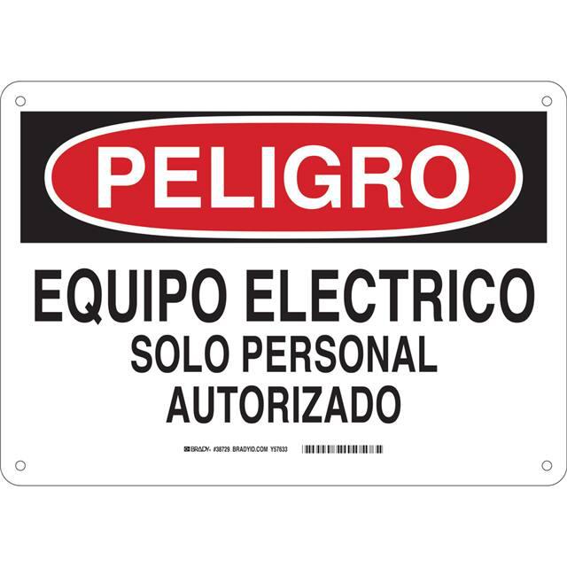 This is manufactured by Brady Corporation. The manufacturer part number is 38729. Label with a size of 14.00" l x 10.00" w (355.6mm x 254.0mm). The product is rohs3 compliant. It is assigned with possible HTSUS value of 3926.90.9985. It is shipped in bulk. It has a classic black and red legend, white background colour. The product brady®, is a highly preferred choice for users. The product is made from highly stable and reliable polyester. In addition, it is reach unaffected. Its typical moisture sensitivity level is not applicable. A bespoke label is a peligro. equipo electrico solo personal autorizado label. The product is suitable for use with danger. It has a long 4 weeks standard lead time. The product is designated with the ear99 code number