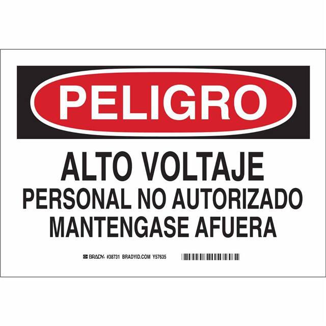 This is manufactured by Brady Corporation. The manufacturer part number is 38731. Label with a size of 14.00" l x 10.00" w (355.6mm x 254.0mm). The product is rohs3 compliant. It is assigned with possible HTSUS value of 3926.90.9985. It is shipped in bulk. It has a classic black and red legend, white background colour. The product brady®, is a highly preferred choice for users. The product is made from highly stable and reliable polyester. In addition, it is reach unaffected. Its typical moisture sensitivity level is not applicable. A bespoke label is a peligro. alto voltaje personal no autorizado mantengase afuera label. The product is suitable for use with warning. It has a long 4 weeks standard lead time. The product is designated with the ear99 code number