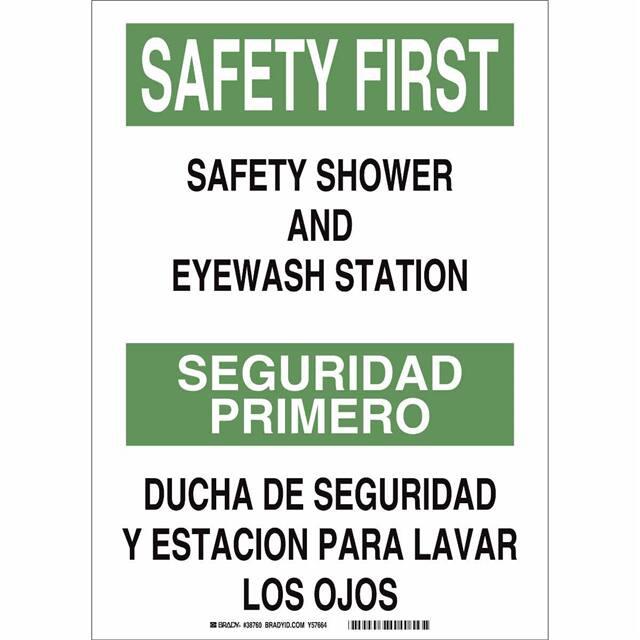 This is manufactured by Brady Corporation. The manufacturer part number is 38760. Label with a size of 14.00" l x 10.00" w (355.6mm x 254.0mm). The product is rohs3 compliant. It is assigned with possible HTSUS value of 3926.90.9985. It is shipped in bulk. It has a classic black and green legend, white background colour. The product brady®, is a highly preferred choice for users. The product is made from highly stable and reliable polyester. In addition, it is reach unaffected. Its typical moisture sensitivity level is not applicable. A bespoke label is a safety first seguridad primero. safety shower and eyewash station ducha de seguridad y estacion para lavar los ojos label. The product is suitable for use with warning. It has a long 4 weeks standard lead time. The product is designated with the ear99 code number