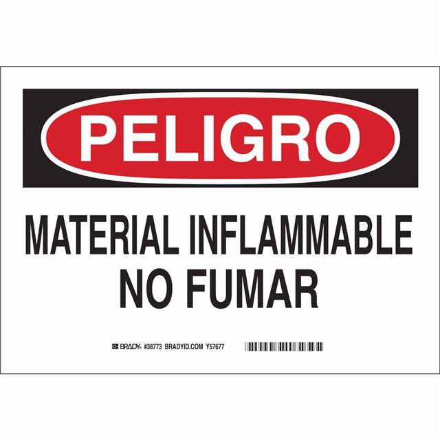 This is manufactured by Brady Corporation. The manufacturer part number is 38773. Label with a size of 10.00" l x 7.00" w (254.0mm x 177.8mm). The product is rohs3 compliant. It is assigned with possible HTSUS value of 3926.90.9985. It is shipped in bulk. It has a classic black and red legend, white background colour. The product brady®, is a highly preferred choice for users. The product is made from highly stable and reliable polyester. In addition, it is reach unaffected. Its typical moisture sensitivity level is not applicable. A bespoke label is a peligro. material inflamable no fumar label. The product is suitable for use with warning. It has a long 4 weeks standard lead time. The product is designated with the ear99 code number