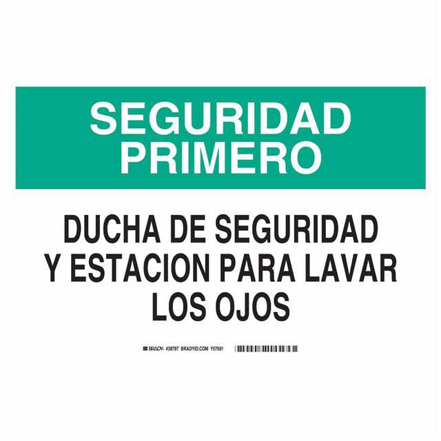 This is manufactured by Brady Corporation. The manufacturer part number is 38787. Label with a size of 14.00" l x 10.00" w (355.6mm x 254.0mm). The product is rohs3 compliant. It is assigned with possible HTSUS value of 3926.90.9985. It is shipped in bulk. It has a classic black and green legend, white background colour. The product brady®, is a highly preferred choice for users. The product is made from highly stable and reliable polyester. In addition, it is reach unaffected. Its typical moisture sensitivity level is not applicable. A bespoke label is a seguridad primero. ducha de seguridad y estacion para lavar los ojos label. The product is suitable for use with notice. It has a long 4 weeks standard lead time. The product is designated with the ear99 code number