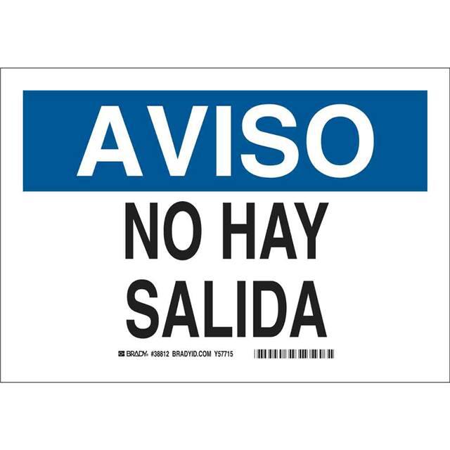 This is manufactured by Brady Corporation. The manufacturer part number is 38812. Label with a size of 10.00" l x 7.00" w (254.0mm x 177.8mm). The product is rohs3 compliant. It is assigned with possible HTSUS value of 3926.90.9985. It is shipped in bulk. It has a classic black and blue legend, white background colour. The product brady®, is a highly preferred choice for users. The product is made from highly stable and reliable polyester. In addition, it is reach unaffected. Its typical moisture sensitivity level is not applicable. A bespoke label is a aviso. no hay salida label. The product is suitable for use with warning. It has a long 4 weeks standard lead time. The product is designated with the ear99 code number