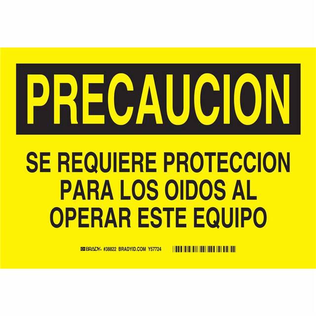 This is manufactured by Brady Corporation. The manufacturer part number is 38822. Label with a size of 10.00" l x 7.00" w (254.0mm x 177.8mm). The product is rohs3 compliant. It is assigned with possible HTSUS value of 3926.90.9985. It is shipped in bulk. It has a classic black legend, yellow background colour. The product brady®, is a highly preferred choice for users. The product is made from highly stable and reliable polyester. In addition, it is reach unaffected. Its typical moisture sensitivity level is not applicable. A bespoke label is a precaucion. se requiere proteccion para los oidos al operar este equipo label. The product is suitable for use with caution. It has a long 4 weeks standard lead time. The product is designated with the ear99 code number
