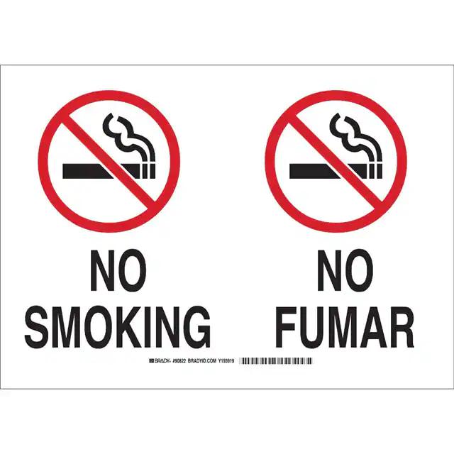 This is manufactured by Brady Corporation. The manufacturer part number is 38933. Label with a size of 14.00" l x 10.00" w (355.6mm x 254.0mm). The product is rohs3 compliant. It is assigned with possible HTSUS value of 3926.90.9985. It is shipped in bulk. It has a classic black and red legend, white background colour. The product brady®, is a highly preferred choice for users. The product is made from highly stable and reliable polyester. In addition, it is reach unaffected. Its typical moisture sensitivity level is not applicable. A bespoke label is a no smoking/no fumar label. The product is suitable for use with warning. It has a long 4 weeks standard lead time. The product is designated with the ear99 code number