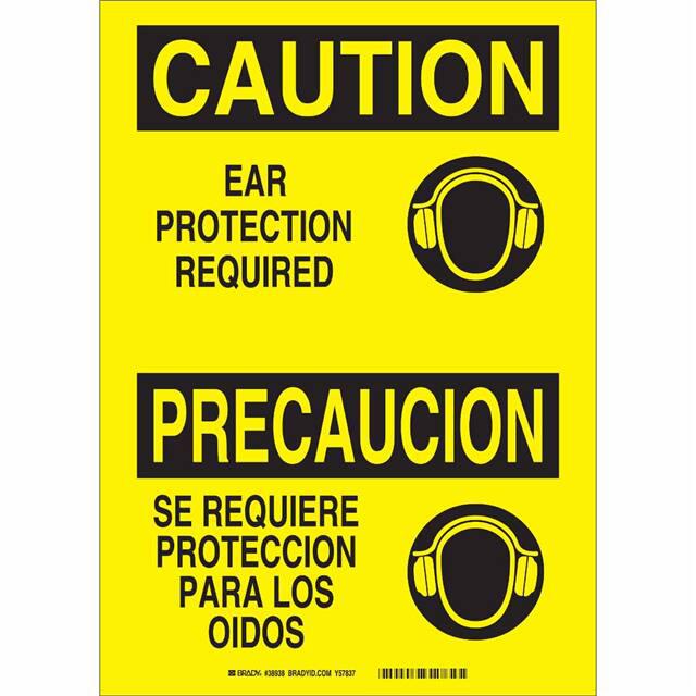 This is manufactured by Brady Corporation. The manufacturer part number is 38938. Label with a size of 14.00" l x 10.00" w (355.6mm x 254.0mm). The product is rohs3 compliant. It is assigned with possible HTSUS value of 3926.90.9985. It is shipped in bulk. It has a classic black legend, yellow background colour. The product brady®, is a highly preferred choice for users. The product is made from highly stable and reliable polyester. In addition, it is reach unaffected. Its typical moisture sensitivity level is not applicable. A bespoke label is a caution/precaucion. ear protection required/se requiere proteccion para los oidos label. The product is suitable for use with caution. It has a long 4 weeks standard lead time. The product is designated with the ear99 code number