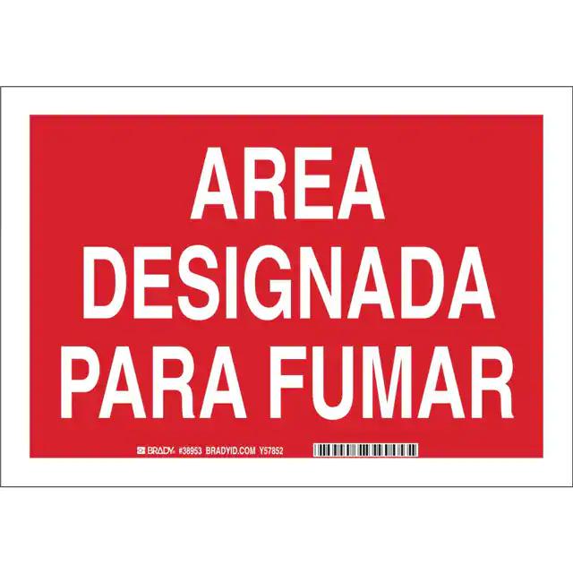 This is manufactured by Brady Corporation. The manufacturer part number is 38953. Label with a size of 10.00" l x 7.00" w (254.0mm x 177.8mm). The product is rohs3 compliant. It is assigned with possible HTSUS value of 3926.90.9985. It is shipped in bulk. It has a classic white legend, red background colour. The product brady®, is a highly preferred choice for users. The product is made from highly stable and reliable polyester. In addition, it is reach unaffected. Its typical moisture sensitivity level is not applicable. A bespoke label is a area designada para fumar label. The product is suitable for use with notice. It has a long 4 weeks standard lead time. The product is designated with the ear99 code number