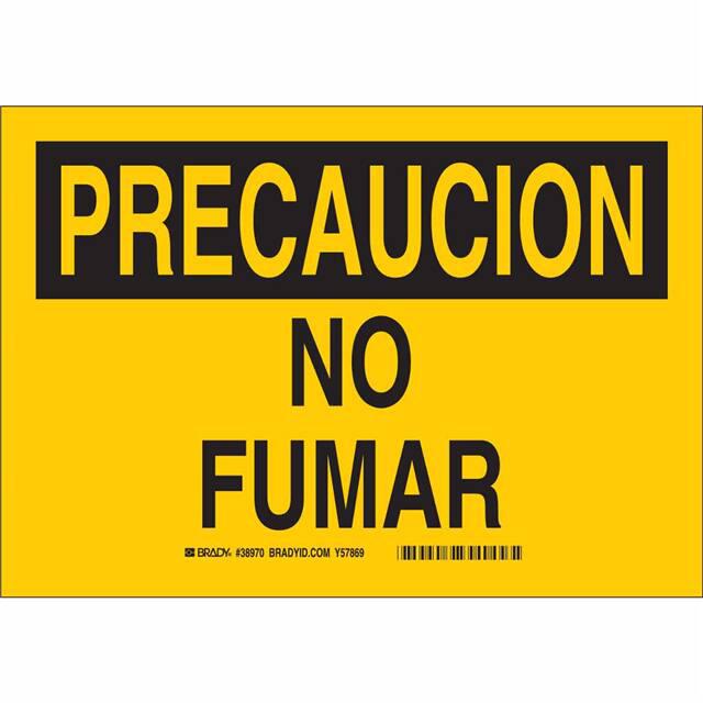 This is manufactured by Brady Corporation. The manufacturer part number is 38970. Label with a size of 14.00" l x 10.00" w (355.6mm x 254.0mm). The product is rohs3 compliant. It is assigned with possible HTSUS value of 3926.90.9985. It is shipped in bulk. It has a classic black legend, yellow background colour. The product brady®, is a highly preferred choice for users. The product is made from highly stable and reliable polyester. In addition, it is reach unaffected. Its typical moisture sensitivity level is not applicable. A bespoke label is a precaucion. no fumar label. The product is suitable for use with caution. It has a long 4 weeks standard lead time. The product is designated with the ear99 code number