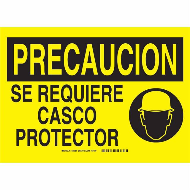 This is manufactured by Brady Corporation. The manufacturer part number is 38981. Label with a size of 14.00" l x 10.00" w (355.6mm x 254.0mm). The product is rohs3 compliant. It is assigned with possible HTSUS value of 3926.90.9985. It is shipped in bulk. It has a classic black legend, yellow background colour. The product brady®, is a highly preferred choice for users. The product is made from highly stable and reliable polyester. In addition, it is reach unaffected. Its typical moisture sensitivity level is not applicable. A bespoke label is a precaucion. se requiere casco protector label. The product is suitable for use with caution. It has a long 4 weeks standard lead time. The product is designated with the ear99 code number