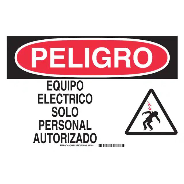 This is manufactured by Brady Corporation. The manufacturer part number is 38986. Label with a size of 14.00" l x 10.00" w (355.6mm x 254.0mm). The product is rohs3 compliant. It is assigned with possible HTSUS value of 3926.90.9985. It is shipped in bulk. It has a classic black and red legend, white background colour. The product brady®, is a highly preferred choice for users. The product is made from highly stable and reliable polyester. In addition, it is reach unaffected. Its typical moisture sensitivity level is not applicable. A bespoke label is a peligro. equipo electrico solo personal autorizado label. The product is suitable for use with danger. It has a long 4 weeks standard lead time. The product is designated with the ear99 code number