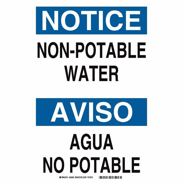 This is manufactured by Brady Corporation. The manufacturer part number is 39080. Label with a size of 14.00" l x 10.00" w (355.6mm x 254.0mm). The product is rohs3 compliant. It is assigned with possible HTSUS value of 3926.90.9985. It is shipped in bulk. It has a classic black and blue legend, white background colour. The product brady®, is a highly preferred choice for users. The product is made from highly stable and reliable polyester. In addition, it is reach unaffected. Its typical moisture sensitivity level is not applicable. A bespoke label is a notice/aviso. non-potable water/ agua no potable label. The product is suitable for use with notice. It has a long 4 weeks standard lead time. The product is designated with the ear99 code number