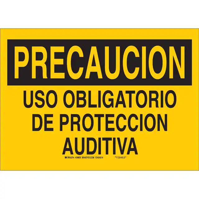 This is manufactured by Brady Corporation. The manufacturer part number is 39123. Label with a size of 10.00" l x 7.00" w (254.0mm x 177.8mm). The product is rohs3 compliant. It is assigned with possible HTSUS value of 3926.90.9985. It is shipped in bulk. It has a classic black legend, yellow background colour. The product brady®, is a highly preferred choice for users. The product is made from highly stable and reliable polyester. In addition, it is reach unaffected. Its typical moisture sensitivity level is not applicable. A bespoke label is a precaucion. uso obligatorio de proteccion auditiva label. The product is suitable for use with caution. It has a long 4 weeks standard lead time. The product is designated with the ear99 code number