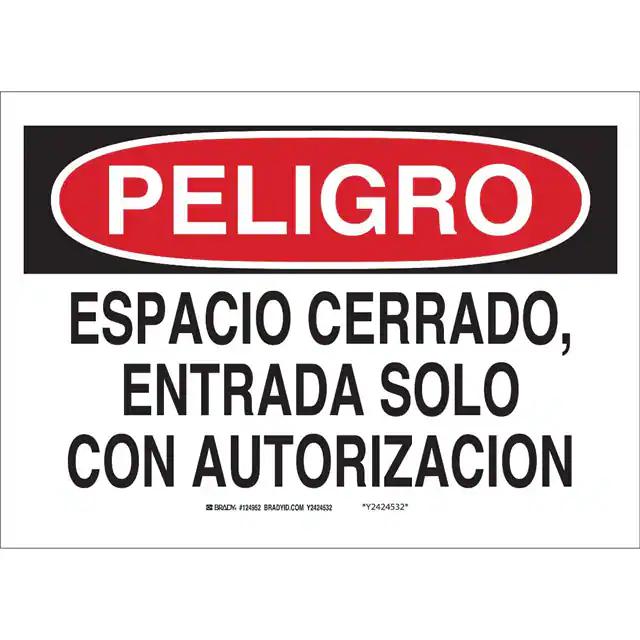 This is manufactured by Brady Corporation. The manufacturer part number is 39151. Label with a size of 14.00" l x 10.00" w (355.6mm x 254.0mm). The product is rohs3 compliant. It is assigned with possible HTSUS value of 3926.90.9985. It is shipped in bulk. It has a classic black and red legend, white background colour. The product brady®, is a highly preferred choice for users. The product is made from highly stable and reliable polyester. In addition, it is reach unaffected. Its typical moisture sensitivity level is not applicable. A bespoke label is a peligro. espacio cerrado, entrada solo con autorizacion label. The product is suitable for use with danger. It has a long 4 weeks standard lead time. The product is designated with the ear99 code number