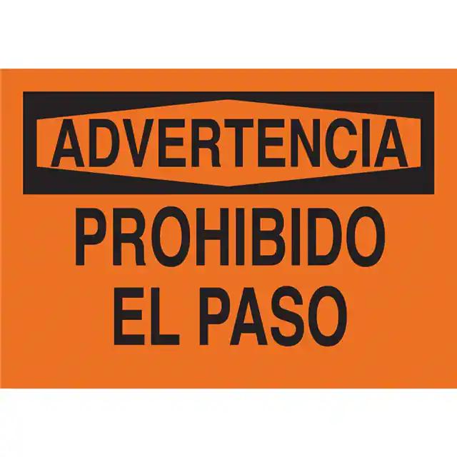 This is manufactured by Brady Corporation. The manufacturer part number is 39542. Label with a size of 10.00" l x 7.00" w (254.0mm x 177.8mm). The product is rohs3 compliant. It is assigned with possible HTSUS value of 3926.90.9985. It is shipped in bulk. It has a classic black legend, orange background colour. The product brady®, is a highly preferred choice for users. The product is made from highly stable and reliable fiberglass. In addition, it is reach unaffected. Its typical moisture sensitivity level is not applicable. A bespoke label is a advertencia. prohibido el paso label. The product is suitable for use with warning. It has a long 4 weeks standard lead time. The product is designated with the ear99 code number