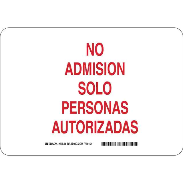 This is manufactured by Brady Corporation. The manufacturer part number is 39544. Label with a size of 10.00" l x 7.00" w (254.0mm x 177.8mm). The product is rohs3 compliant. It is assigned with possible HTSUS value of 3926.90.9985. It is shipped in bulk. It has a classic black and red legend, white background colour. The product brady®, is a highly preferred choice for users. The product is made from highly stable and reliable fiberglass. In addition, it is reach unaffected. Its typical moisture sensitivity level is not applicable. A bespoke label is a no admision solo personas autorizadas label. The product is suitable for use with warning. It has a long 4 weeks standard lead time. The product is designated with the ear99 code number
