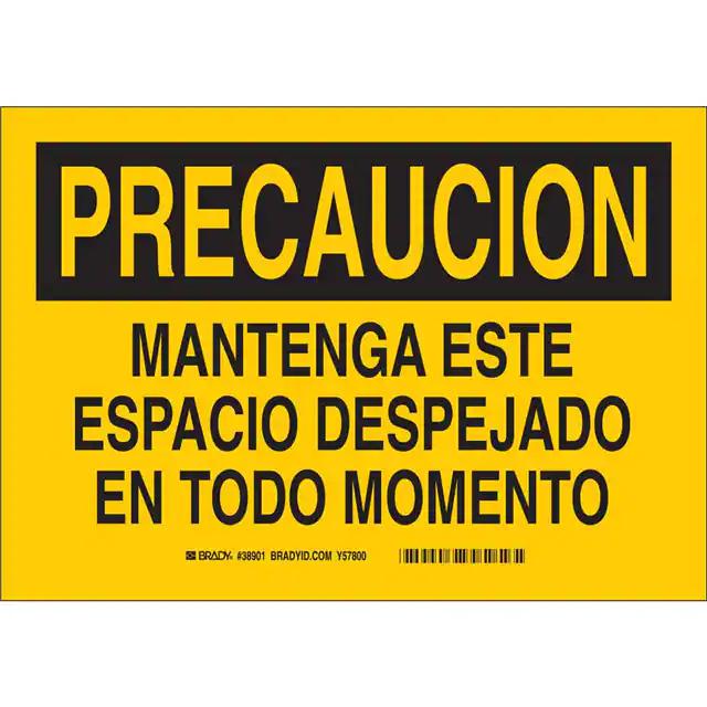 This is manufactured by Brady Corporation. The manufacturer part number is 39766. Label with a size of 10.00" l x 7.00" w (254.0mm x 177.8mm). The product is rohs3 compliant. It is assigned with possible HTSUS value of 3926.90.9985. It is shipped in bulk. It has a classic black legend, yellow background colour. The product brady®, is a highly preferred choice for users. The product is made from highly stable and reliable fiberglass. In addition, it is reach unaffected. Its typical moisture sensitivity level is not applicable. A bespoke label is a precaucion. mantenga este espacio despejado en todo momento label. The product is suitable for use with caution. It has a long 4 weeks standard lead time. The product is designated with the ear99 code number