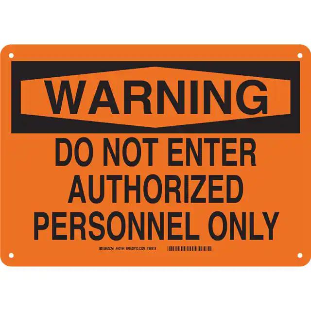 This is manufactured by Brady Corporation. The manufacturer part number is 40198. Label with a size of 10.00" l x 7.00" w (254.0mm x 177.8mm). The product is rohs3 compliant. It is assigned with possible HTSUS value of 8310.00.0000. It is shipped in bulk. It has a classic black and red legend, white background colour. The product brady®, is a highly preferred choice for users. The product is made from highly stable and reliable aluminum. In addition, it is reach unaffected. Its typical moisture sensitivity level is not applicable. A bespoke label is a warning. do not enter authorized person only label. The product is suitable for use with warning. It has a long 4 weeks standard lead time. The product is designated with the ear99 code number