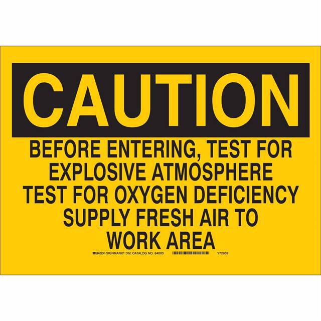 This is manufactured by Brady Corporation. The manufacturer part number is 40617. Label with a size of 10.00" l x 7.00" w (254.0mm x 177.8mm). The product is not applicable. It is assigned with possible HTSUS value of 8310.00.0000. It is shipped in bulk. It has a classic black legend, yellow background colour. The product brady®, is a highly preferred choice for users. The product is made from highly stable and reliable aluminum. In addition, it is reach affected. Its typical moisture sensitivity level is not applicable. A bespoke label is a caution. before entering, test for explosive atmosphere test for oxygen deficiency supply fresh air to work area label. The product is suitable for use with caution. It has a long 4 weeks standard lead time. The product is designated with the ear99 code number