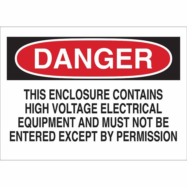 This is manufactured by Brady Corporation. The manufacturer part number is 40691. Label with a size of 10.00" l x 7.00" w (254.0mm x 177.8mm). The product is rohs3 compliant. It is assigned with possible HTSUS value of 8310.00.0000. It is shipped in bulk. It has a classic black and red legend, white background colour. The product brady®, is a highly preferred choice for users. The product is made from highly stable and reliable aluminum. In addition, it is reach unaffected. Its typical moisture sensitivity level is not applicable. A bespoke label is a danger. this enclosure contains high voltage electrical equipment and must not be entered except by permission label. The product is suitable for use with danger. It has a long 4 weeks standard lead time. The product is designated with the ear99 code number