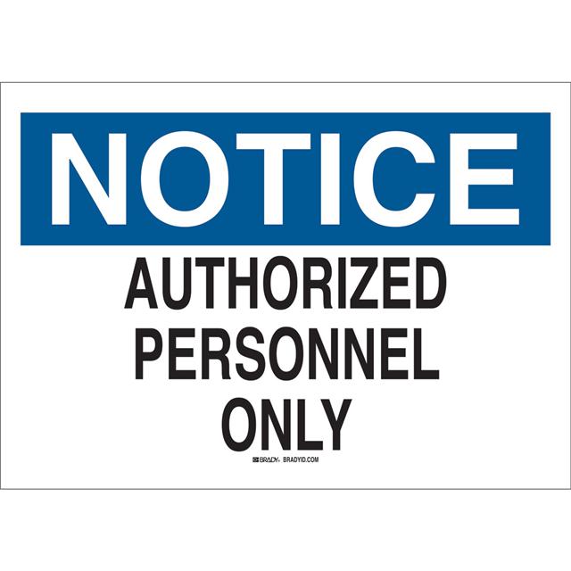 This is manufactured by Brady Corporation. The manufacturer part number is 40705. Label with a size of 10.00" l x 7.00" w (254.0mm x 177.8mm). The product is rohs3 compliant. It is assigned with possible HTSUS value of 8310.00.0000. It is shipped in bulk. It has a classic black and blue legend, white background colour. The product brady®, is a highly preferred choice for users. The product is made from highly stable and reliable aluminum. In addition, it is reach unaffected. Its typical moisture sensitivity level is not applicable. A bespoke label is a notice. authorized personnel only label. The product is suitable for use with notice. It has a long 4 weeks standard lead time. The product is designated with the ear99 code number