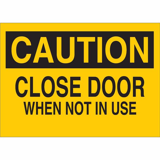 This is manufactured by Brady Corporation. The manufacturer part number is 41069. Label with a size of 10.00" l x 7.00" w (254.0mm x 177.8mm). The product is not applicable. It is assigned with possible HTSUS value of 8310.00.0000. It is shipped in bulk. It has a classic black legend, yellow background colour. The product brady®, is a highly preferred choice for users. The product is made from highly stable and reliable aluminum. In addition, it is reach affected. Its typical moisture sensitivity level is not applicable. A bespoke label is a caution. close door when not in use label. The product is suitable for use with caution. It has a long 4 weeks standard lead time. The product is designated with the ear99 code number