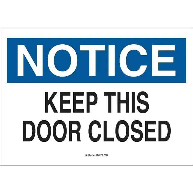 This is manufactured by Brady Corporation. The manufacturer part number is 41101. Label with a size of 10.00" l x 7.00" w (254.0mm x 177.8mm). The product is rohs3 compliant. It is assigned with possible HTSUS value of 8310.00.0000. It is shipped in bulk. It has a classic black and blue legend, white background colour. The product brady®, is a highly preferred choice for users. The product is made from highly stable and reliable aluminum. In addition, it is reach unaffected. Its typical moisture sensitivity level is not applicable. A bespoke label is a notice. keep this door closed label. The product is suitable for use with notice. It has a long 4 weeks standard lead time. The product is designated with the ear99 code number