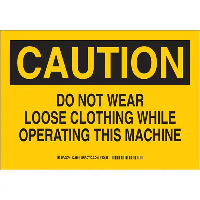 This is manufactured by Brady Corporation. The manufacturer part number is 42414. Label with a size of 10.00" l x 7.00" w (254.0mm x 177.8mm). The product is not applicable. It is assigned with possible HTSUS value of 8310.00.0000. It is shipped in bulk. It has a classic black legend, yellow background colour. The product brady®, is a highly preferred choice for users. The product is made from highly stable and reliable aluminum. In addition, it is reach affected. Its typical moisture sensitivity level is not applicable. A bespoke label is a caution. do not wear loose clothing while operating this machine label. The product is suitable for use with caution. It has a long 4 weeks standard lead time. The product is designated with the ear99 code number