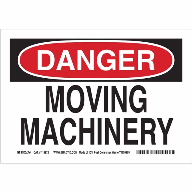 This is manufactured by Brady Corporation. The manufacturer part number is 42542. Label with a size of 10.00" l x 7.00" w (254.0mm x 177.8mm). The product is rohs3 compliant. It is assigned with possible HTSUS value of 8310.00.0000. It is shipped in bulk. It has a classic black and red legend, white background colour. The product brady®, is a highly preferred choice for users. The product is made from highly stable and reliable aluminum. In addition, it is reach unaffected. Its typical moisture sensitivity level is not applicable. A bespoke label is a danger. moving machinery label. The product is suitable for use with danger. It has a long 4 weeks standard lead time. The product is designated with the ear99 code number