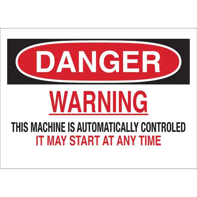 This is manufactured by Brady Corporation. The manufacturer part number is 42568. Label with a size of 10.00" l x 7.00" w (254.0mm x 177.8mm). The product is rohs3 compliant. It is assigned with possible HTSUS value of 8310.00.0000. It is shipped in bulk. It has a classic black and red legend, white background colour. The product brady®, is a highly preferred choice for users. The product is made from highly stable and reliable aluminum. In addition, it is reach unaffected. Its typical moisture sensitivity level is not applicable. A bespoke label is a danger. warning this machine is automatically controlled it may start at any time label. The product is suitable for use with warning. It has a long 4 weeks standard lead time. The product is designated with the ear99 code number