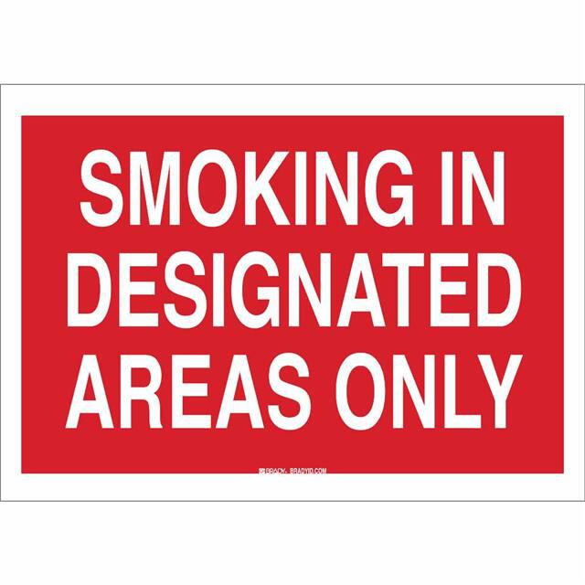 This is manufactured by Brady Corporation. The manufacturer part number is 42721. Label with a size of 10.00" l x 7.00" w (254.0mm x 177.8mm). The product is rohs3 compliant. It is assigned with possible HTSUS value of 8310.00.0000. It is shipped in bulk. It has a classic white legend, red background colour. The product brady®, is a highly preferred choice for users. The product is made from highly stable and reliable aluminum. In addition, it is reach unaffected. Its typical moisture sensitivity level is not applicable. A bespoke label is a smoking in designated areas only label. The product is suitable for use with warning. It has a long 4 weeks standard lead time. The product is designated with the ear99 code number