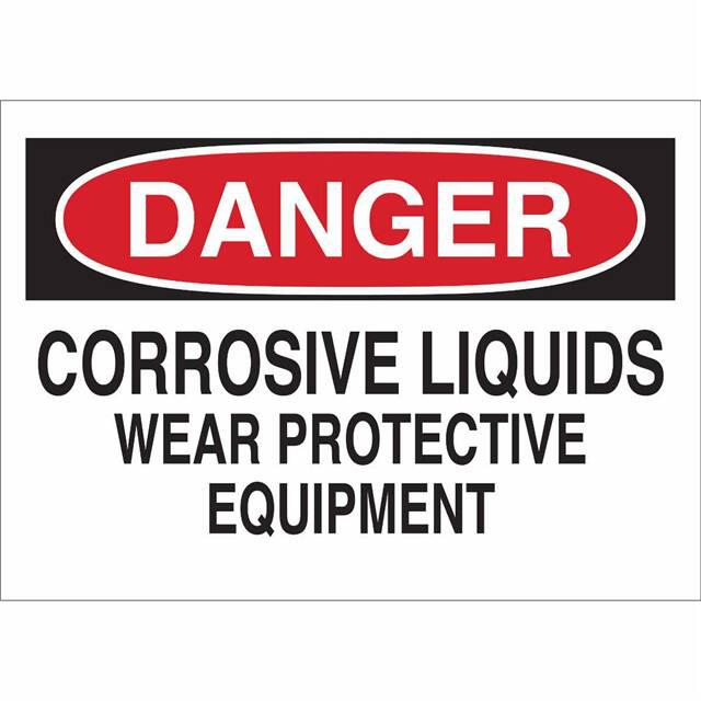 This is manufactured by Brady Corporation. The manufacturer part number is 43001. Label with a size of 10.00" l x 7.00" w (254.0mm x 177.8mm). The product is rohs3 compliant. It is assigned with possible HTSUS value of 8310.00.0000. It is shipped in bulk. It has a classic black and red legend, white background colour. The product brady®, is a highly preferred choice for users. The product is made from highly stable and reliable aluminum. In addition, it is reach unaffected. Its typical moisture sensitivity level is not applicable. A bespoke label is a danger. corrosive liquids wear protective equipment label. The product is suitable for use with danger. It has a long 4 weeks standard lead time. The product is designated with the ear99 code number
