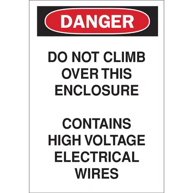 This is manufactured by Brady Corporation. The manufacturer part number is 43363. Label with a size of 10.00" l x 7.00" w (254.0mm x 177.8mm). The product is rohs3 compliant. It is assigned with possible HTSUS value of 8310.00.0000. It is shipped in bulk. It has a classic black and red legend, white background colour. The product brady®, is a highly preferred choice for users. The product is made from highly stable and reliable aluminum. In addition, it is reach unaffected. Its typical moisture sensitivity level is not applicable. A bespoke label is a danger. do not climb over this enclosure contains high voltage electrical wires label. The product is suitable for use with danger. It has a long 4 weeks standard lead time. The product is designated with the ear99 code number