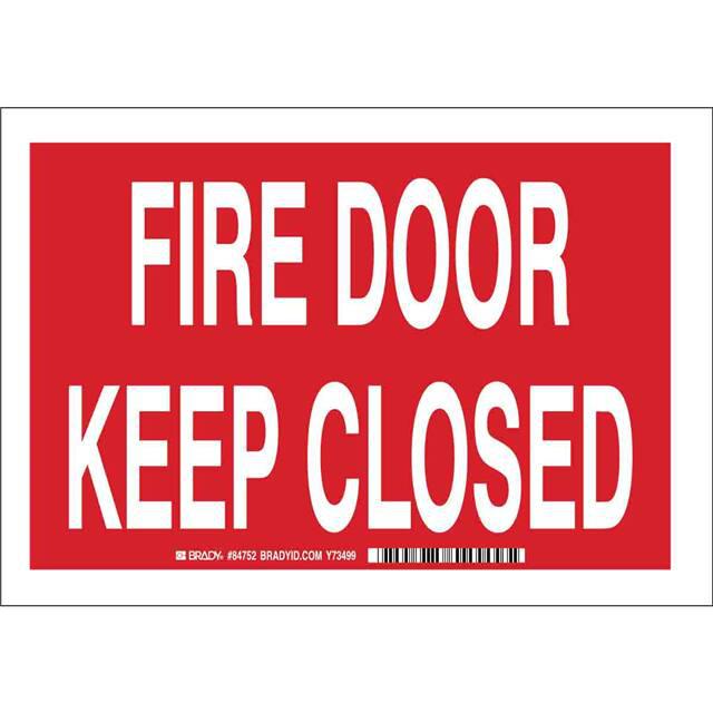 This is manufactured by Brady Corporation. The manufacturer part number is 43458. Label with a size of 10.00" l x 7.00" w (254.0mm x 177.8mm). The product is rohs3 compliant. It is assigned with possible HTSUS value of 8310.00.0000. It is shipped in bulk. It has a classic white legend, red background colour. The product brady®, is a highly preferred choice for users. The product is made from highly stable and reliable aluminum. In addition, it is reach unaffected. Its typical moisture sensitivity level is not applicable. A bespoke label is a fire door keep closed label. The product is suitable for use with fire. It has a long 4 weeks standard lead time. The product is designated with the ear99 code number