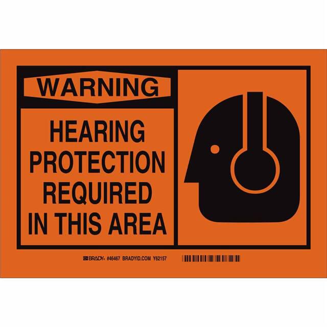 This is manufactured by Brady Corporation. The manufacturer part number is 46467. Label with a size of 10.00" l x 7.00" w (254.0mm x 177.8mm). The product is rohs3 compliant. It is assigned with possible HTSUS value of 8310.00.0000. It is shipped in bulk. It has a classic black legend, orange background colour. The product brady®, is a highly preferred choice for users. The product is made from highly stable and reliable aluminum. In addition, it is reach unaffected. Its typical moisture sensitivity level is not applicable. A bespoke label is a warning. hearing protection required in this area label. The product is suitable for use with warning. It has a long 4 weeks standard lead time. The product is designated with the ear99 code number