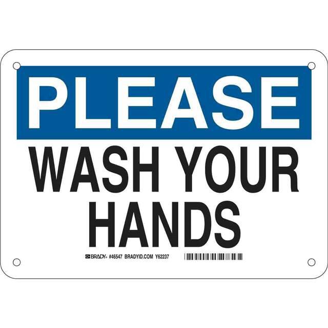 This is manufactured by Brady Corporation. The manufacturer part number is 46547. Label with a size of 10.00" l x 7.00" w (254.0mm x 177.8mm). The product is rohs3 compliant. It is assigned with possible HTSUS value of 8310.00.0000. It is shipped in bulk. It has a classic black and blue legend, white background colour. The product brady®, is a highly preferred choice for users. The product is made from highly stable and reliable aluminum. In addition, it is reach unaffected. Its typical moisture sensitivity level is not applicable. A bespoke label is a please. wash your hands label. The product is suitable for use with warning. It has a long 4 weeks standard lead time. The product is designated with the ear99 code number