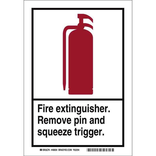 This is manufactured by Brady Corporation. The manufacturer part number is 46604. Label with a size of 10.00" l x 7.00" w (254.0mm x 177.8mm). The product is rohs3 compliant. It is assigned with possible HTSUS value of 8310.00.0000. It is shipped in bulk. It has a classic black and red legend, white background colour. The product brady®, is a highly preferred choice for users. The product is made from highly stable and reliable aluminum. In addition, it is reach unaffected. Its typical moisture sensitivity level is not applicable. A bespoke label is a fire extinguisher. remove pin and squeeze trigger. label. The product is suitable for use with fire. It has a long 4 weeks standard lead time. The product is designated with the ear99 code number