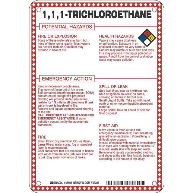 This is manufactured by Brady Corporation. The manufacturer part number is 48893. Label with a size of 10.00" l x 7.00" w (254.0mm x 177.8mm). The product is rohs3 compliant. It is assigned with possible HTSUS value of 3926.90.9985. It is shipped in bulk. It has a classic black, blue, red and yellow legend, white background colour. The product brady®, is a highly preferred choice for users. The product is made from highly stable and reliable fiberglass. In addition, it is reach unaffected. Its typical moisture sensitivity level is not applicable. A bespoke label is a 1, 1, 1, trichloroethane potential hazards label. The product is suitable for use with warning. It has a long 4 weeks standard lead time. The product is designated with the ear99 code number