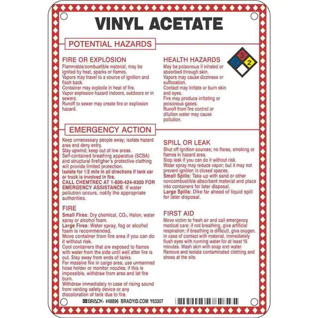 This is manufactured by Brady Corporation. The manufacturer part number is 48896. Label with a size of 10.00" l x 7.00" w (254.0mm x 177.8mm). The product is rohs3 compliant. It is assigned with possible HTSUS value of 3926.90.9985. It is shipped in bulk. It has a classic black and red legend, white background colour. The product brady®, is a highly preferred choice for users. The product is made from highly stable and reliable fiberglass. In addition, it is reach unaffected. Its typical moisture sensitivity level is not applicable. A bespoke label is a vinyl acetate potential hazards label. The product is suitable for use with warning. It has a long 4 weeks standard lead time. The product is designated with the ear99 code number